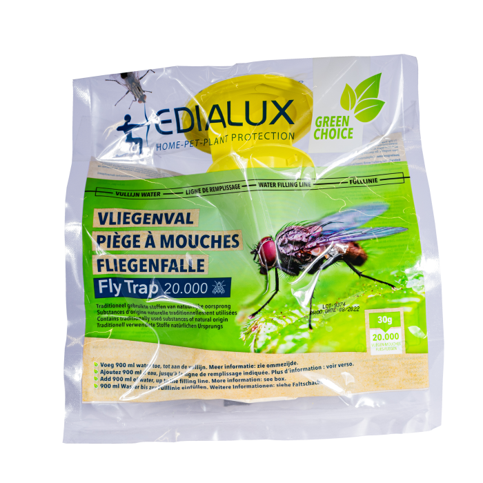 Le Edialux Flytrap est très facile d’utilisation. En fonction du type, un piège peut recevoir d’environ 20 000 (FLYEDIAKLEIN24) à 50 000 (FLYT50) mouches.